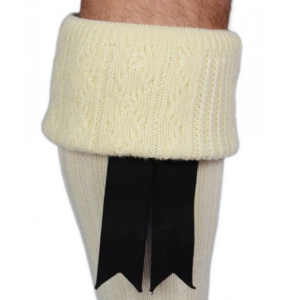 Kilt flashes are decorative garters that rest beneath the fold of the kilt hose (socks) to help to keep the hose in place. The bright flash fabric lies on the outside of the leg.